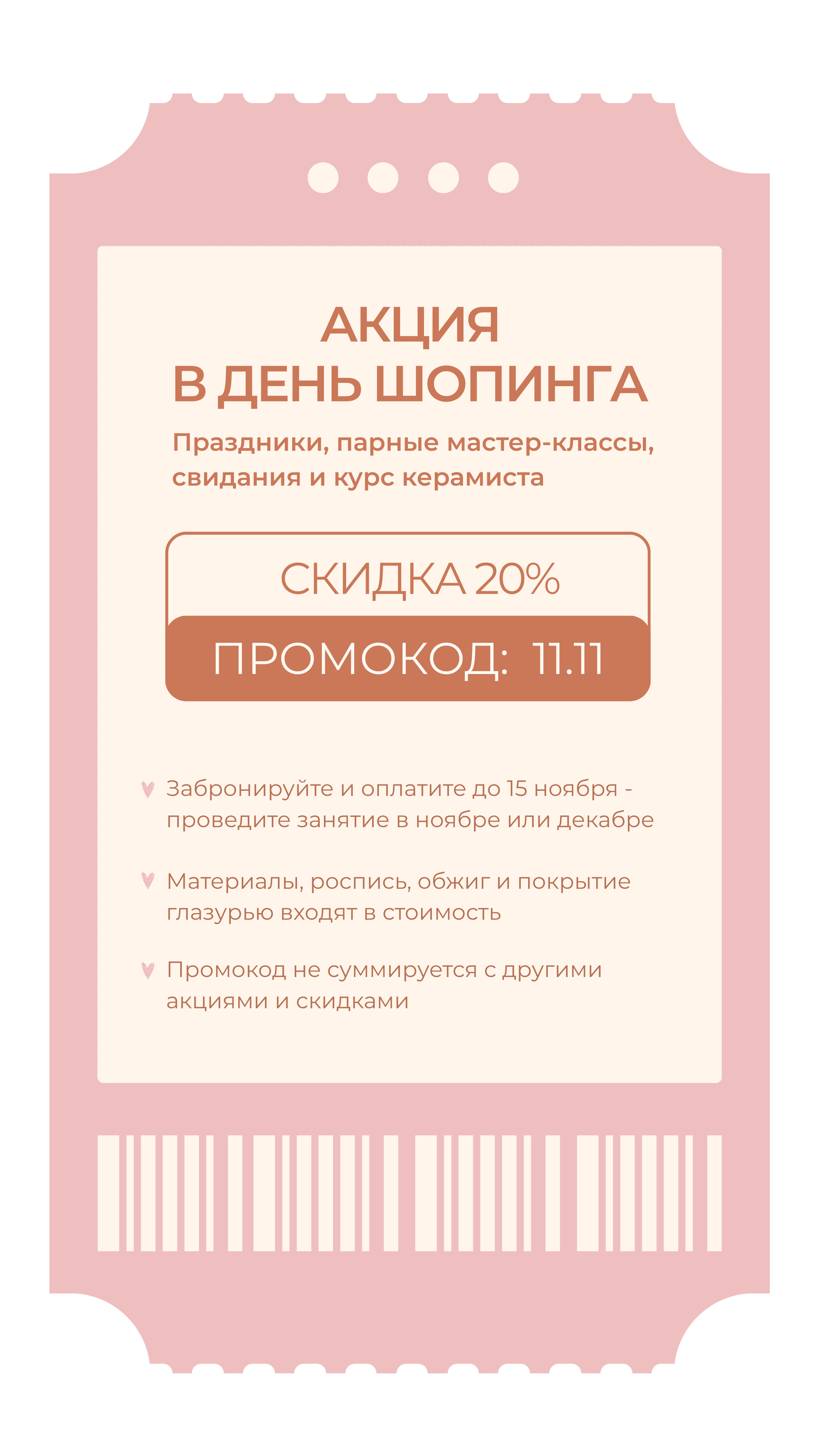 АКЦИЯ «11.11» - 20% НА ПРАЗДНИКИ, СВИДАНИЯ И КУРС КЕРАМИСТА