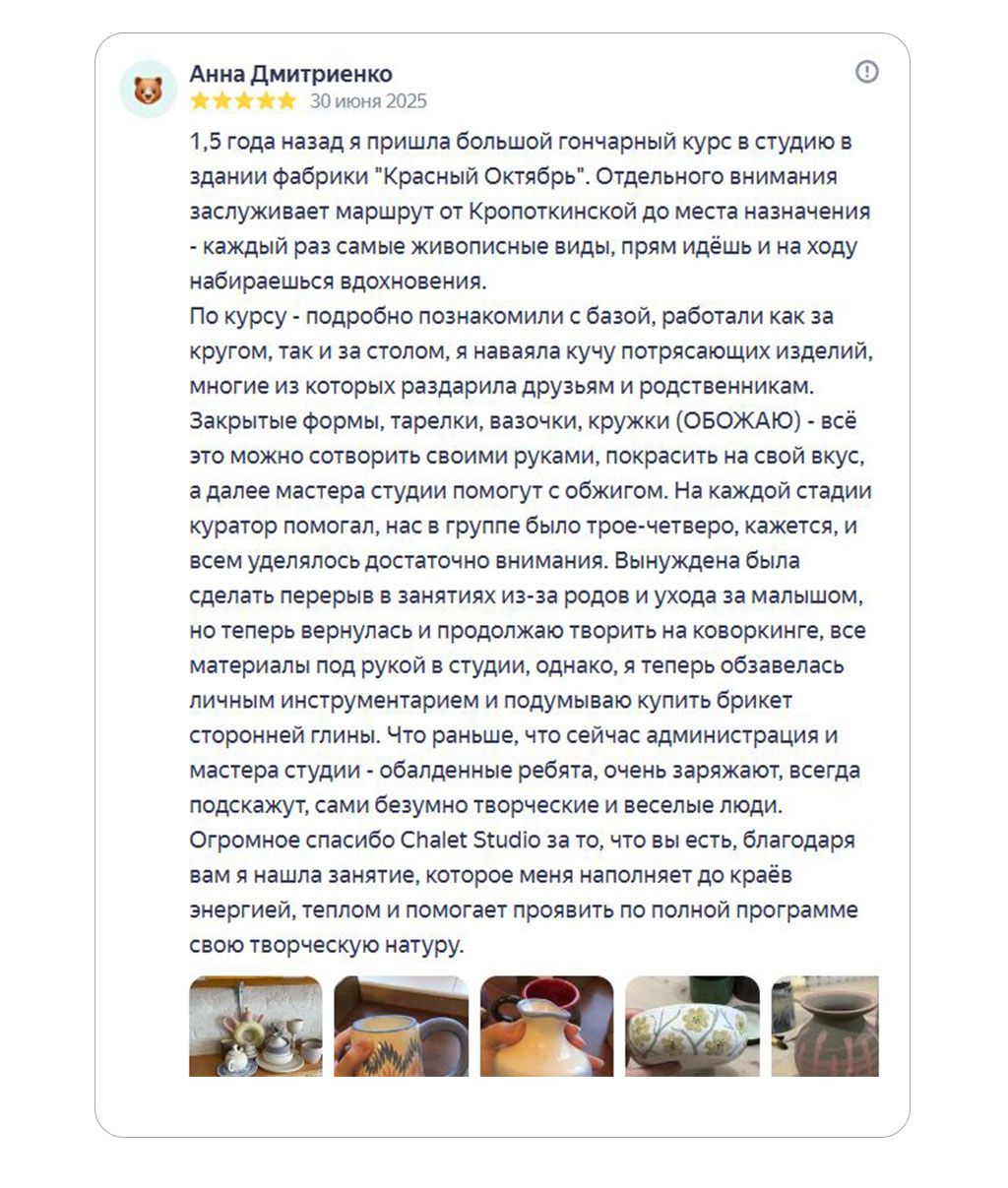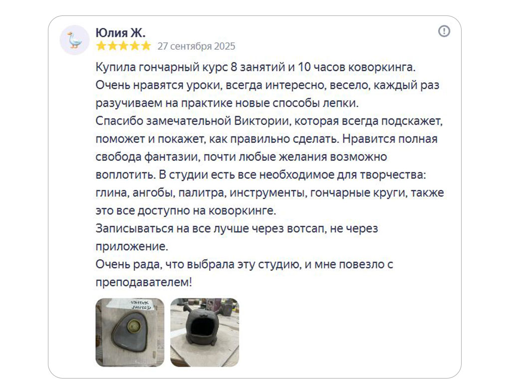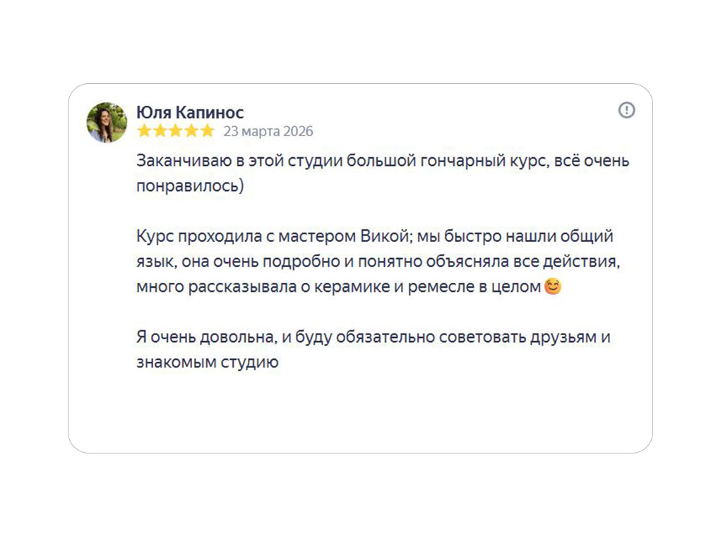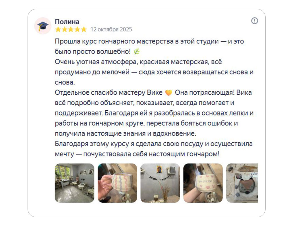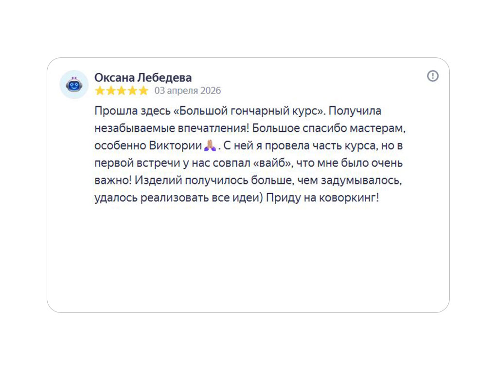 В нашей студии обучение — это не только процесс освоения новых навыков, но и реальная возможность стать частью нашей команды. После завершения любого из курсов (Курс Керамиста, Большой Гончарный Курс или ПРОкачка) и успешной стажировки в наших мастерских, вы получаете шанс присоединиться к нашему профессиональному коллективу