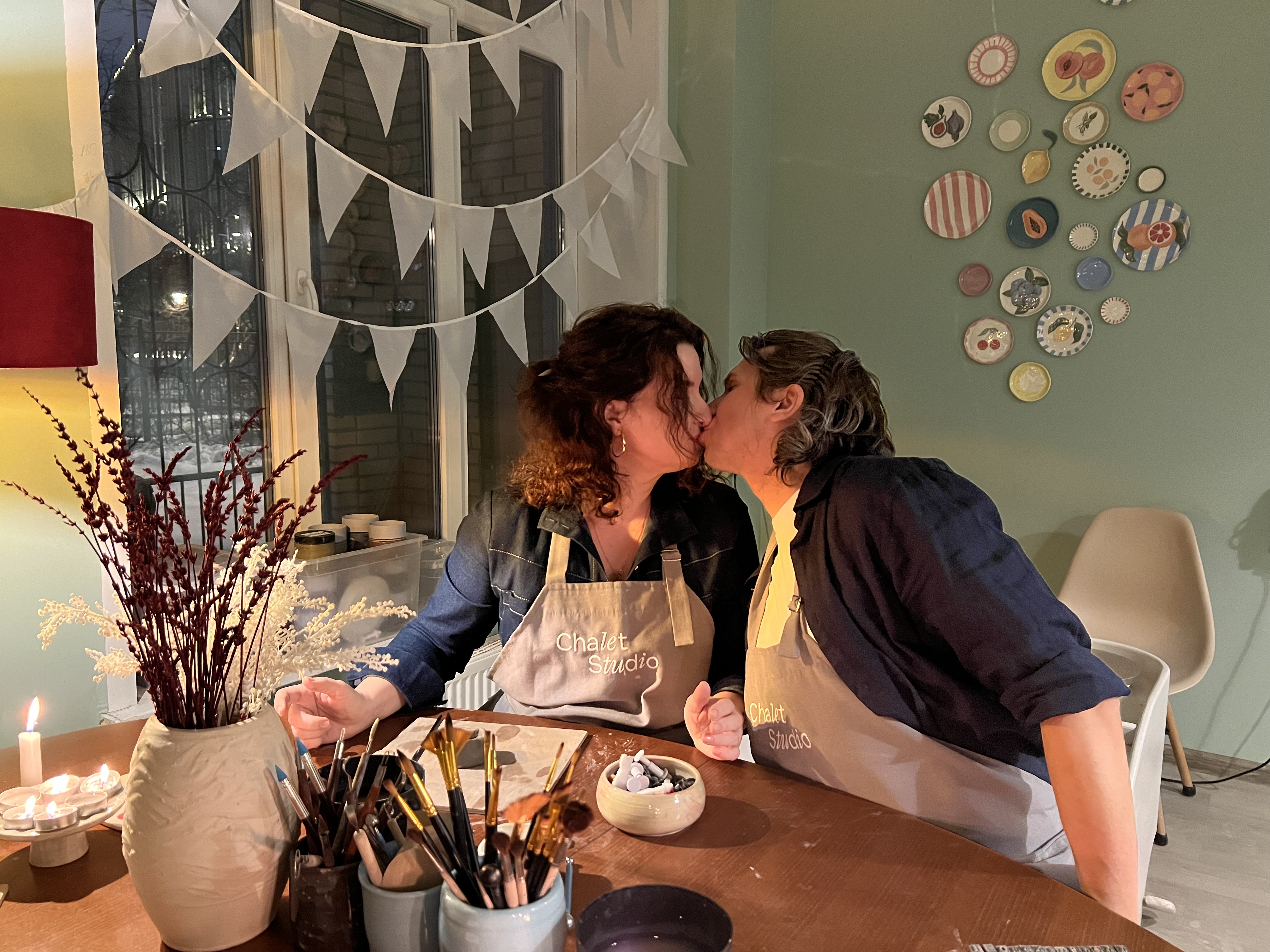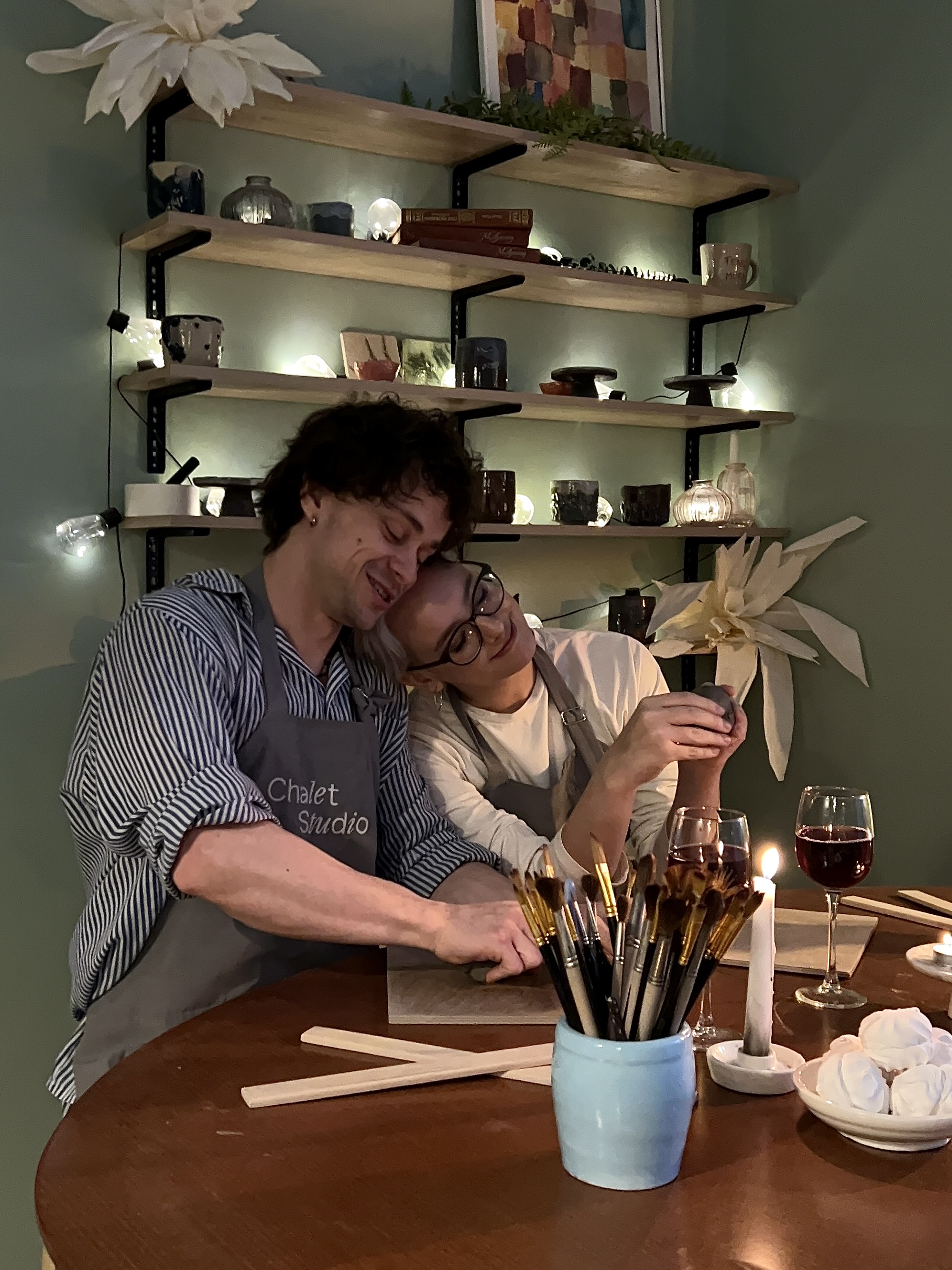 Свидание — творите за 2 гончарными кругами, попробуйте гончарить за общим кругом под мелодичный плейлист и горящие свечи.